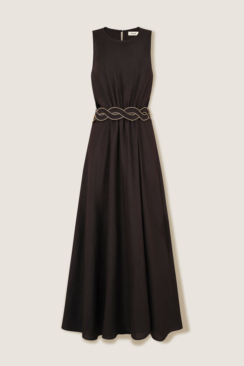 Robe à ceinture tresse brodée de strass