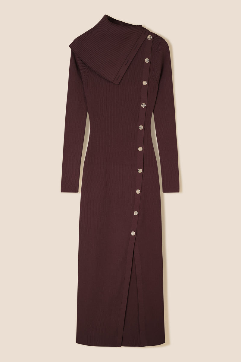 Long dress with asymmetrical collar