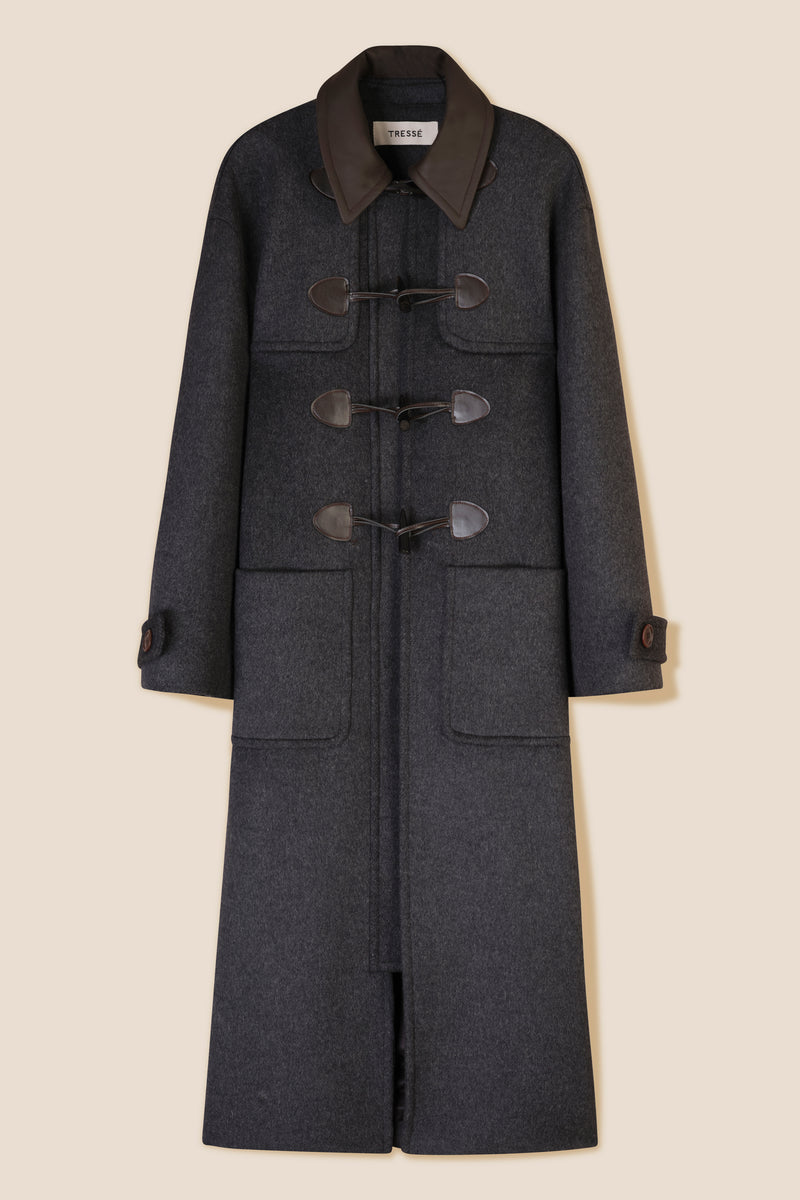 Duffle coat with leather collar